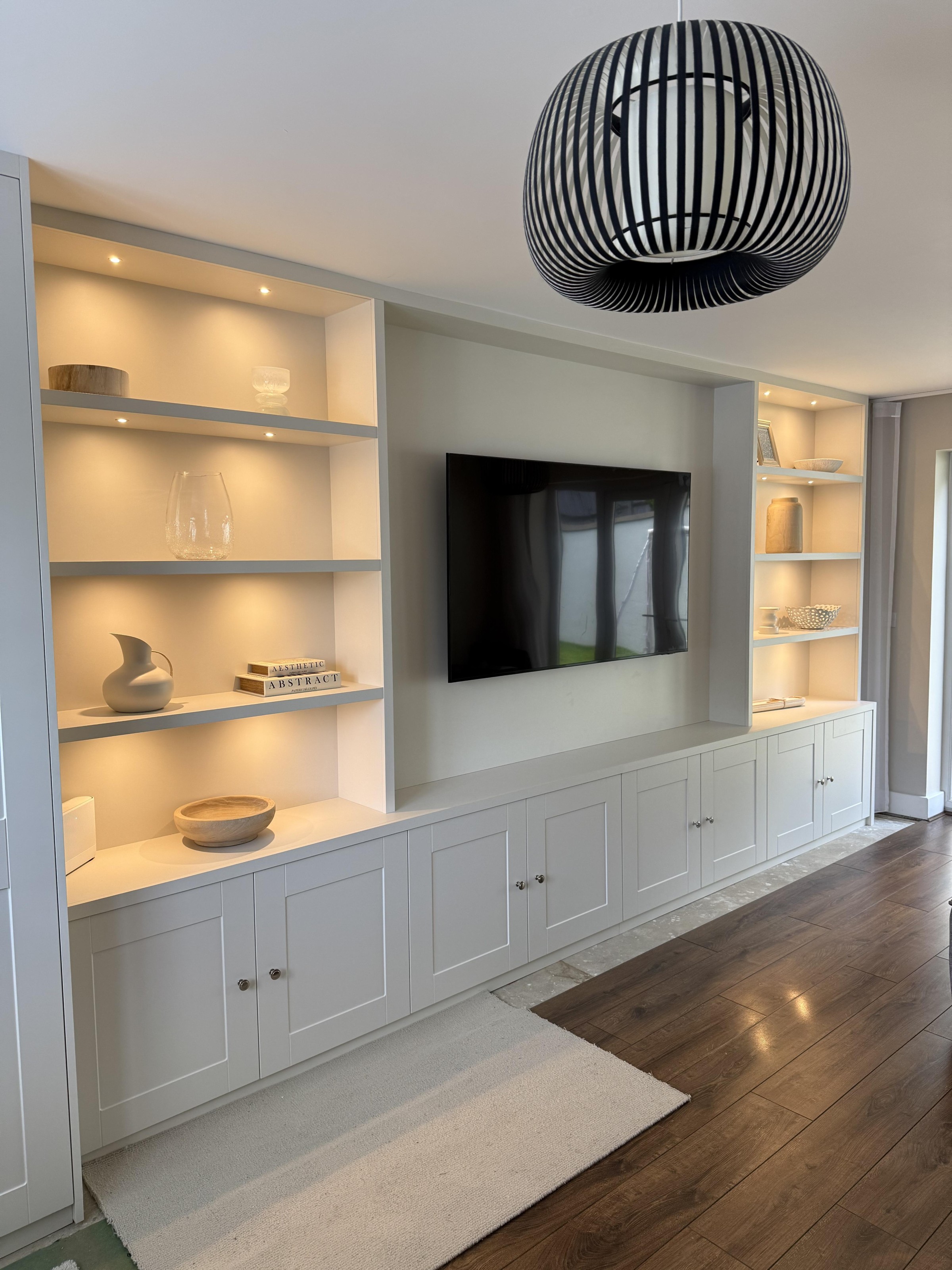 Made-to-measure cabinetry designed to maximise space and elevate the room. Each piece is tailored to your layout, storage needs, and chosen finishes for a seamless, built-in look.