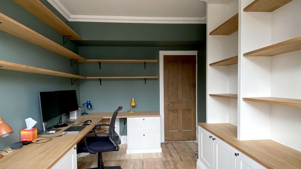 Bespoke fitted home offices designed around how you work. From integrated desks to tailored storage, each space is crafted for comfort, organisation, and long-term use.